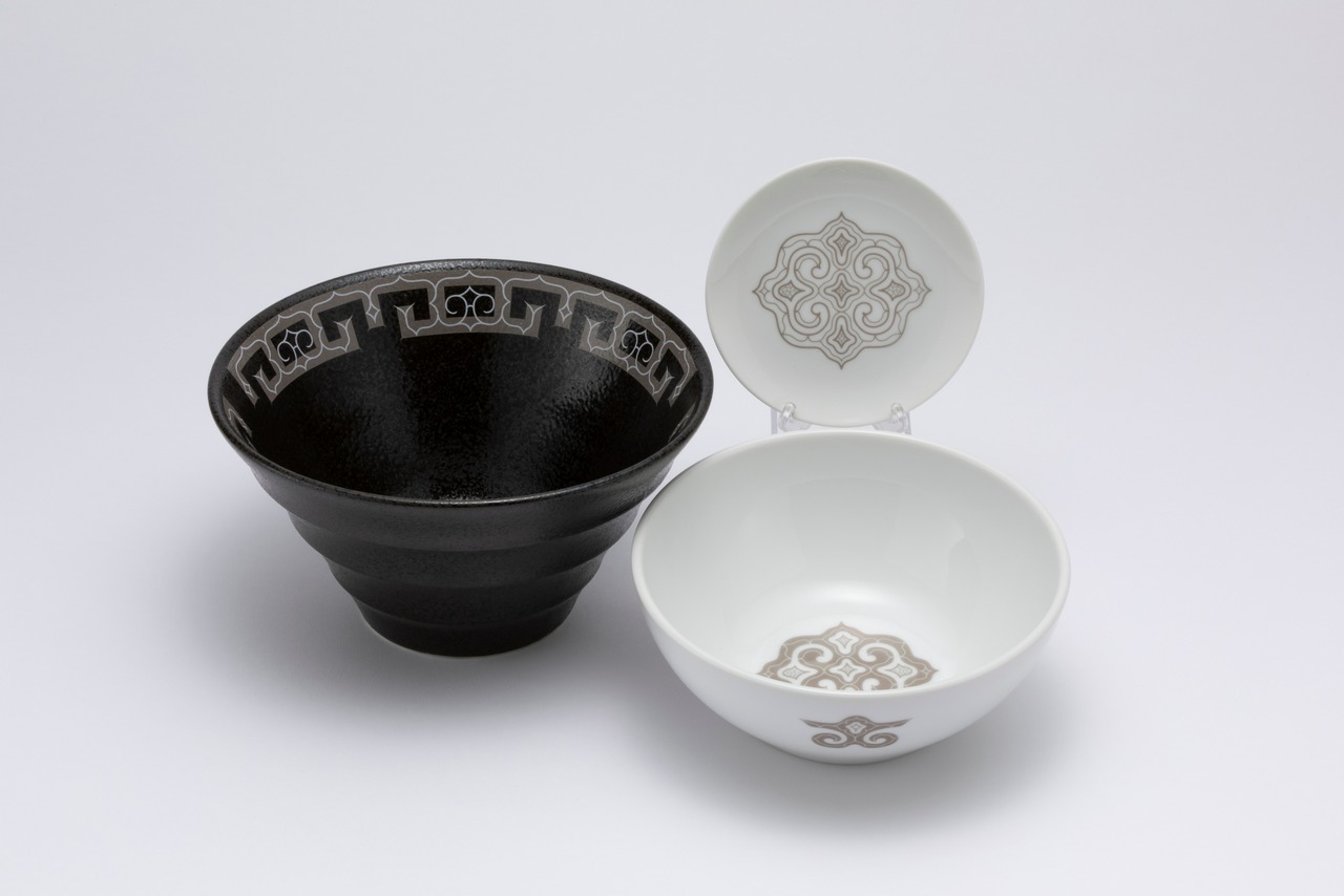 作家それぞれのデザインが特徴的なアイヌ文様を施した美濃焼のテーブルウェア
