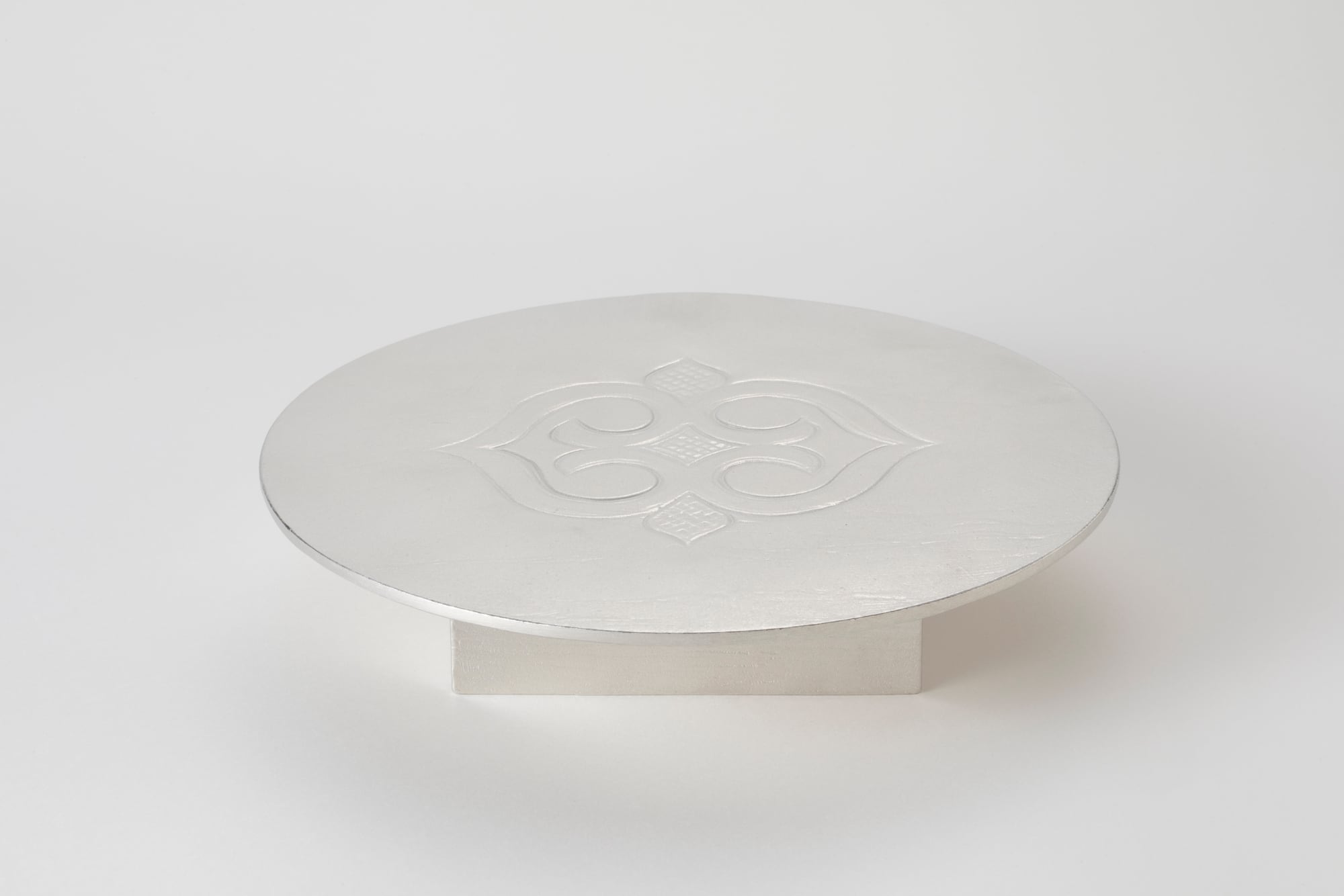 盛台は、一面にアイヌ文様を施した面と、アイヌ民具の一つであるオヒョウという木の皮を柔らかくして編んだ袋「サラニㇷ゚」の網目を施した面を楽しめます。