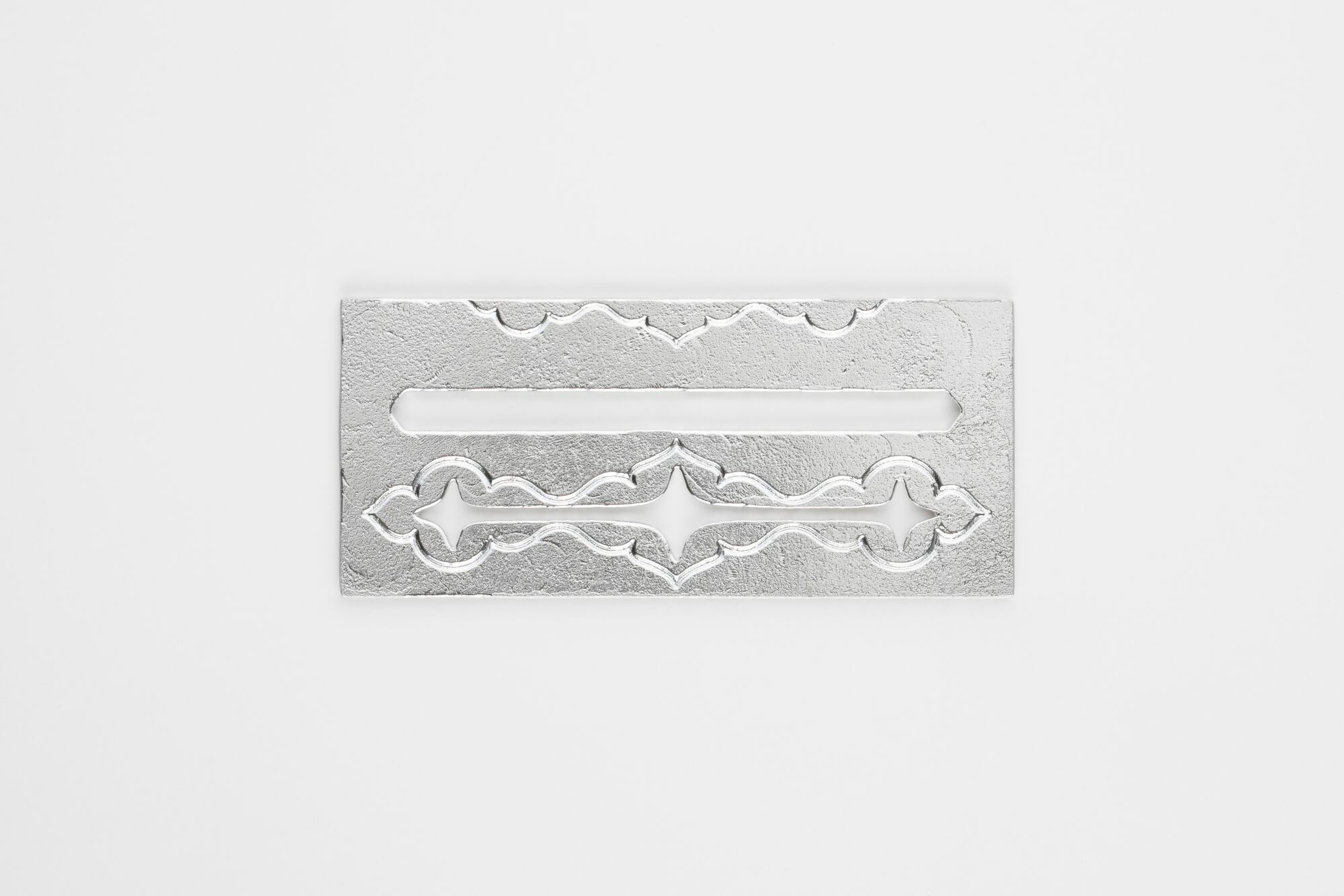 カトラリーレスト シㇰは、アイヌ文様を木彫などの工芸品では珍しい「抜き」で表現しました。